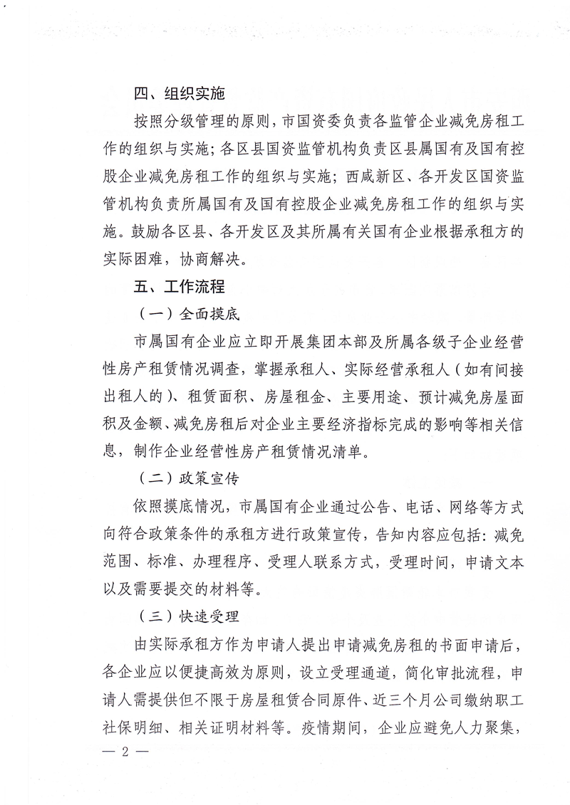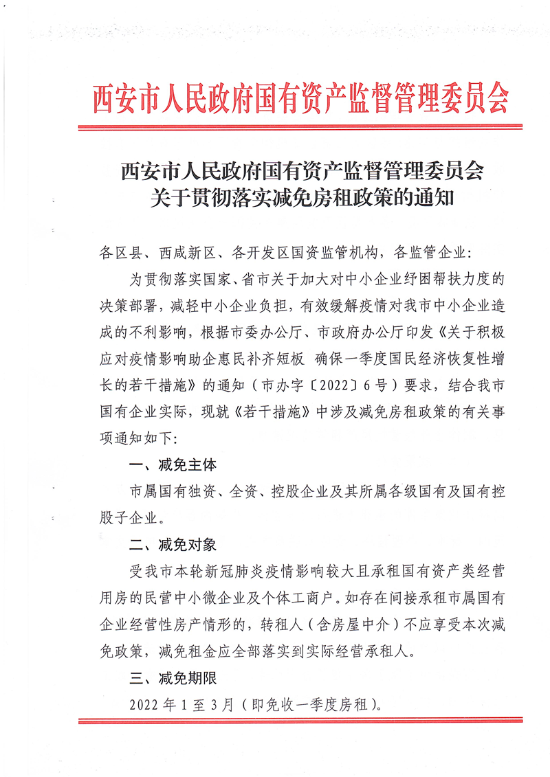 西安市國(guó)資委關(guān)于做好減免國(guó)有企業(yè)房屋租金工作有關(guān)事項(xiàng)的補(bǔ)充通知